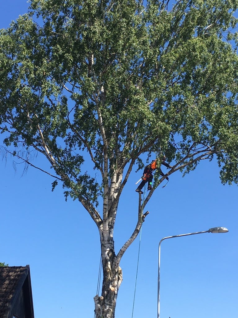 Vi specialiserar oss på säker och effektiv trädfällning, oavsett trädets storlek eller placering. Vi är utbildade, certifierade och försäkrade, med lång erfarenhet av trädfällning. Vi använder avancerad utrustning och tekniker som säkerställer att trädet fälls på ett kontrollerat och säkert sätt.